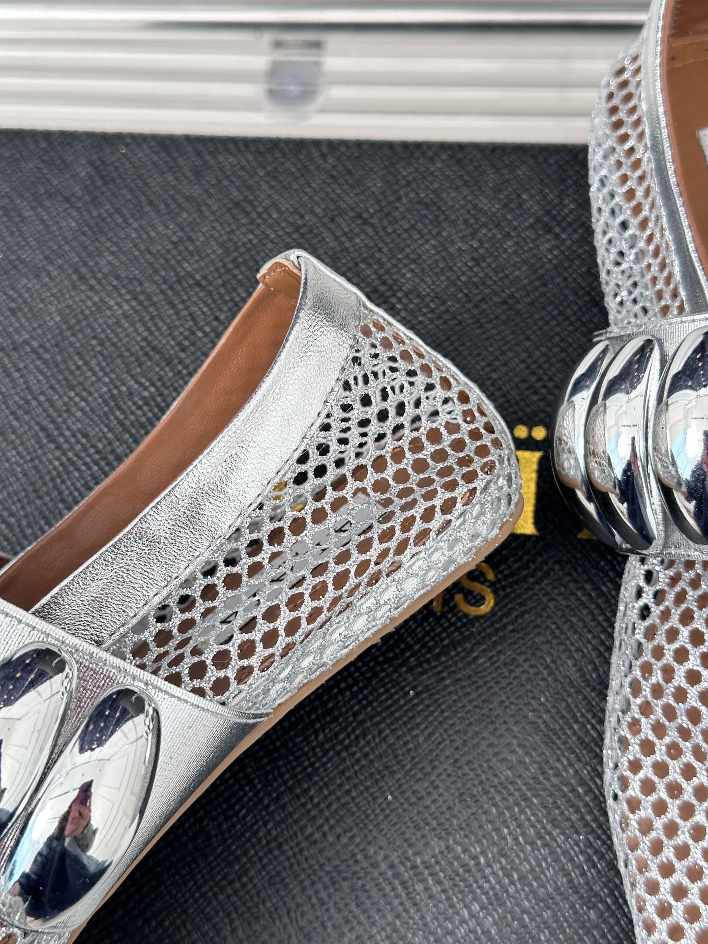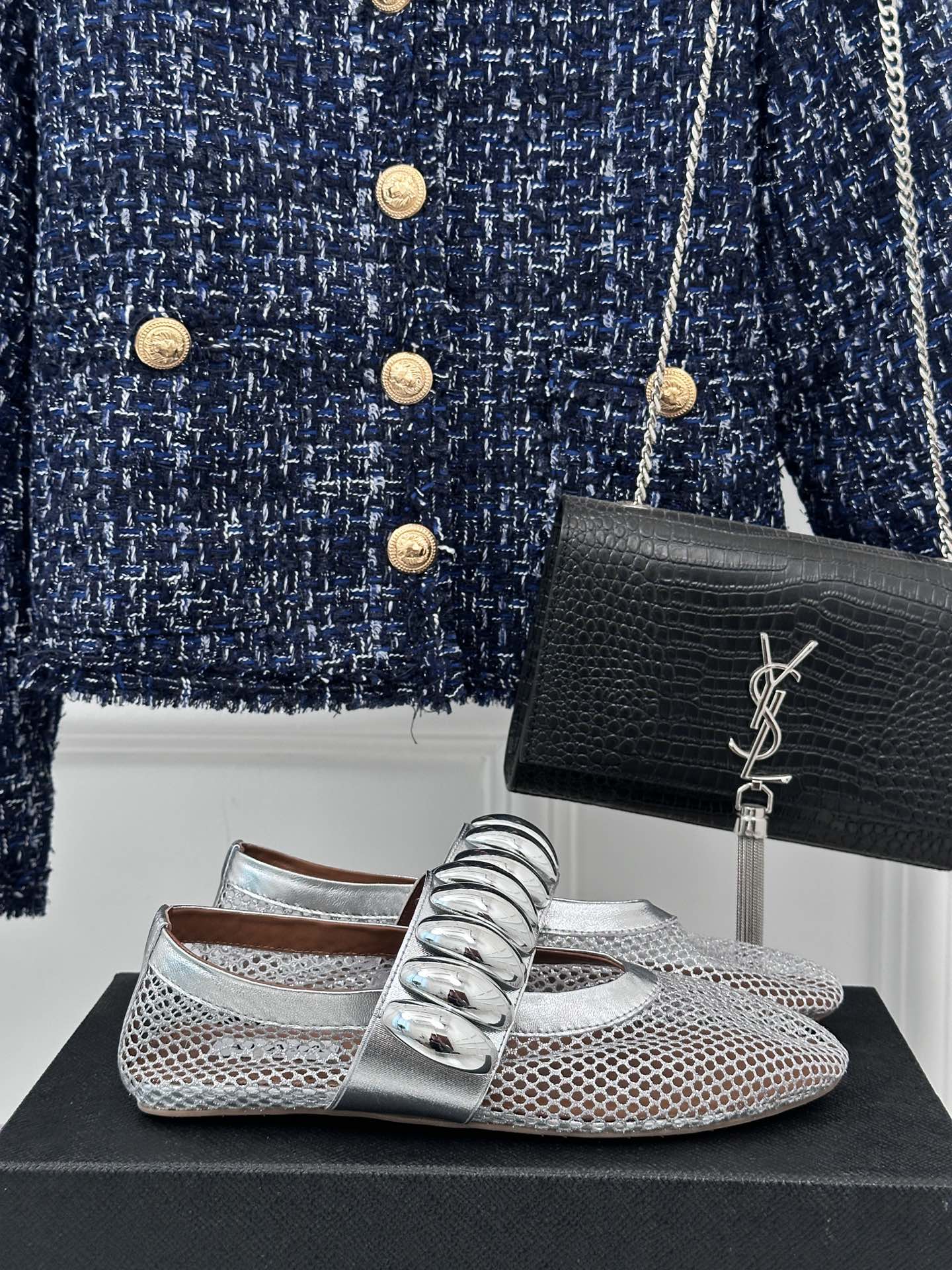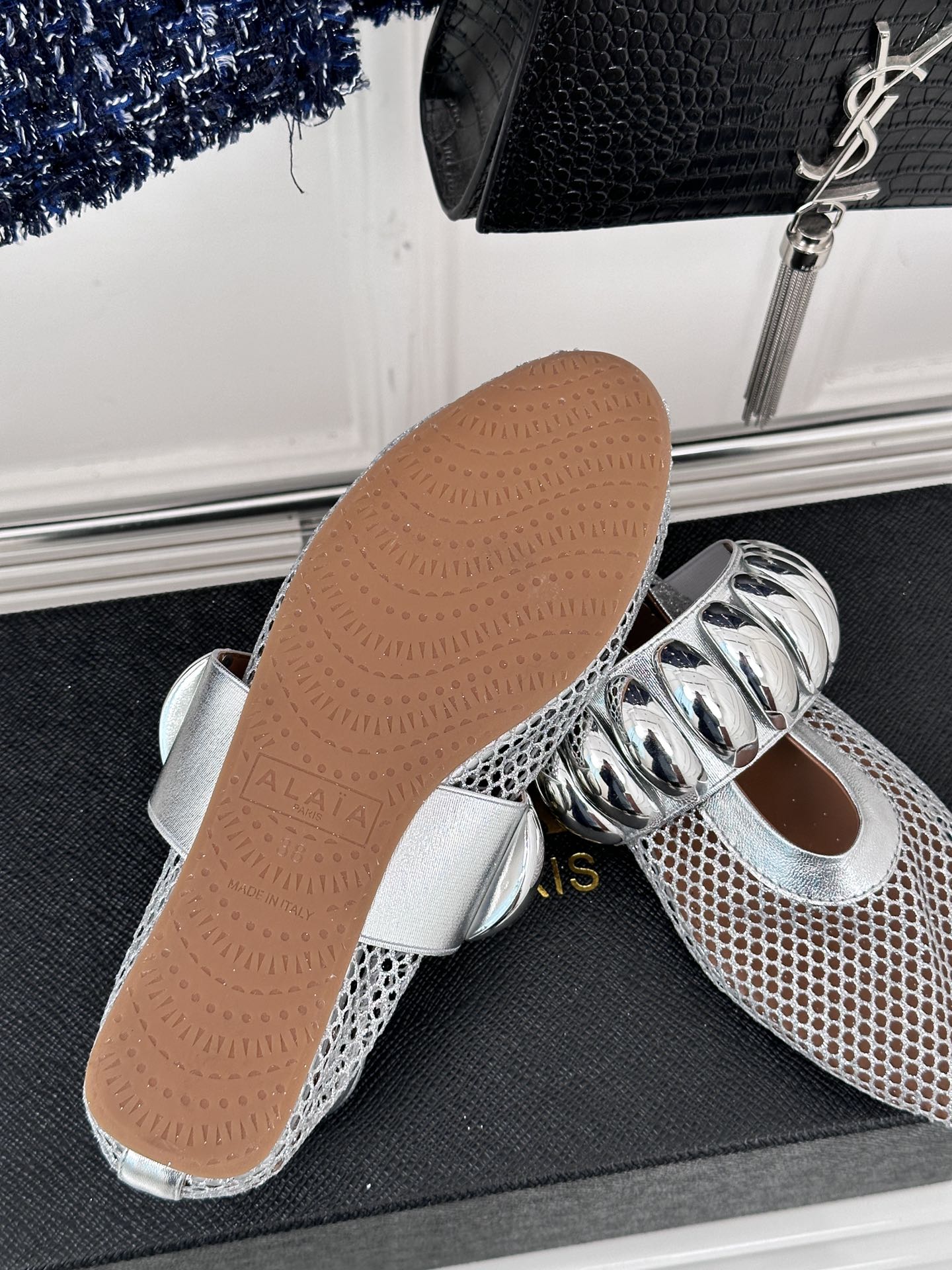 Alaia 25 Mary Jane Mesh Ballet Flats Silver Calfskin 293250
