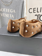 Alaila Ballet Flats In Moss Brown Velvet With Rhinestones 971998