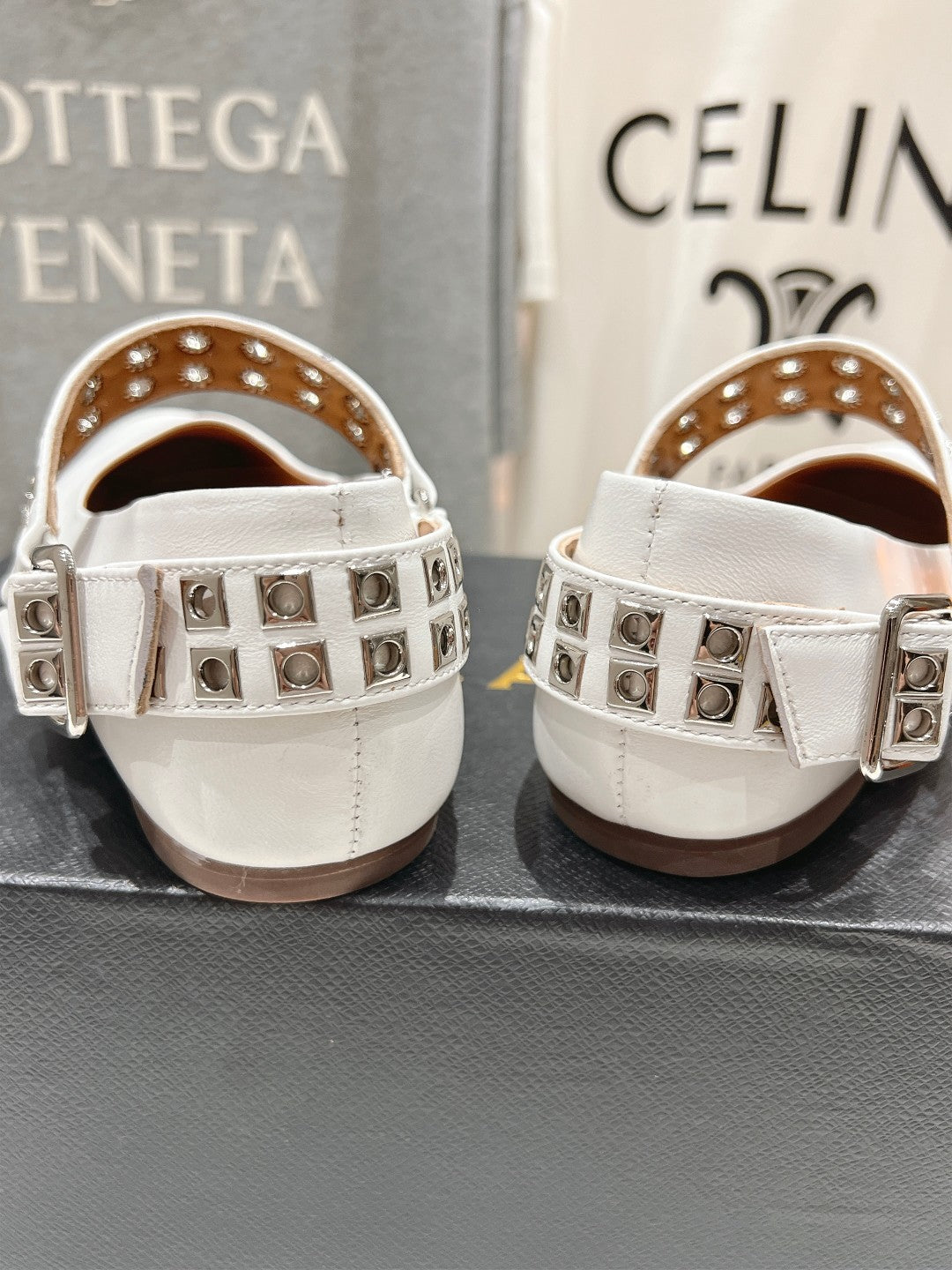 Alaila Biker Ballet Flats In White Cowhide 911438