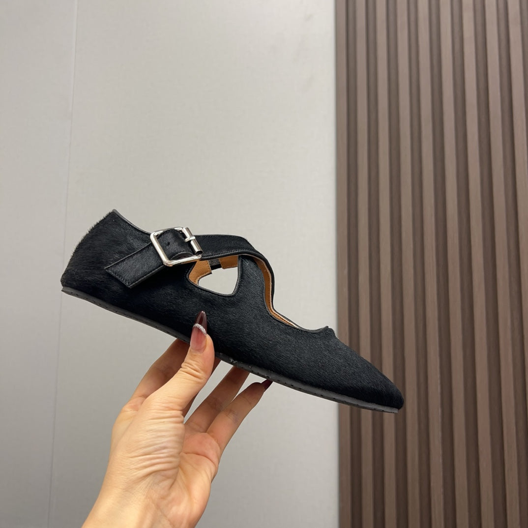 Alaila Criss Cross Ballet Flats In Black Glossy Calfskin 996027