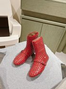 ALAIA SHORT BOOTS IN CHERRY RED LAMBSKIN ATTACH RHINSTONES