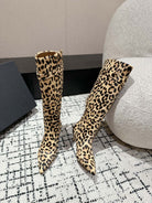 Alaila High Boots 60mm In Light Yellow Calfskin Horsehair Leopard Print 916740
