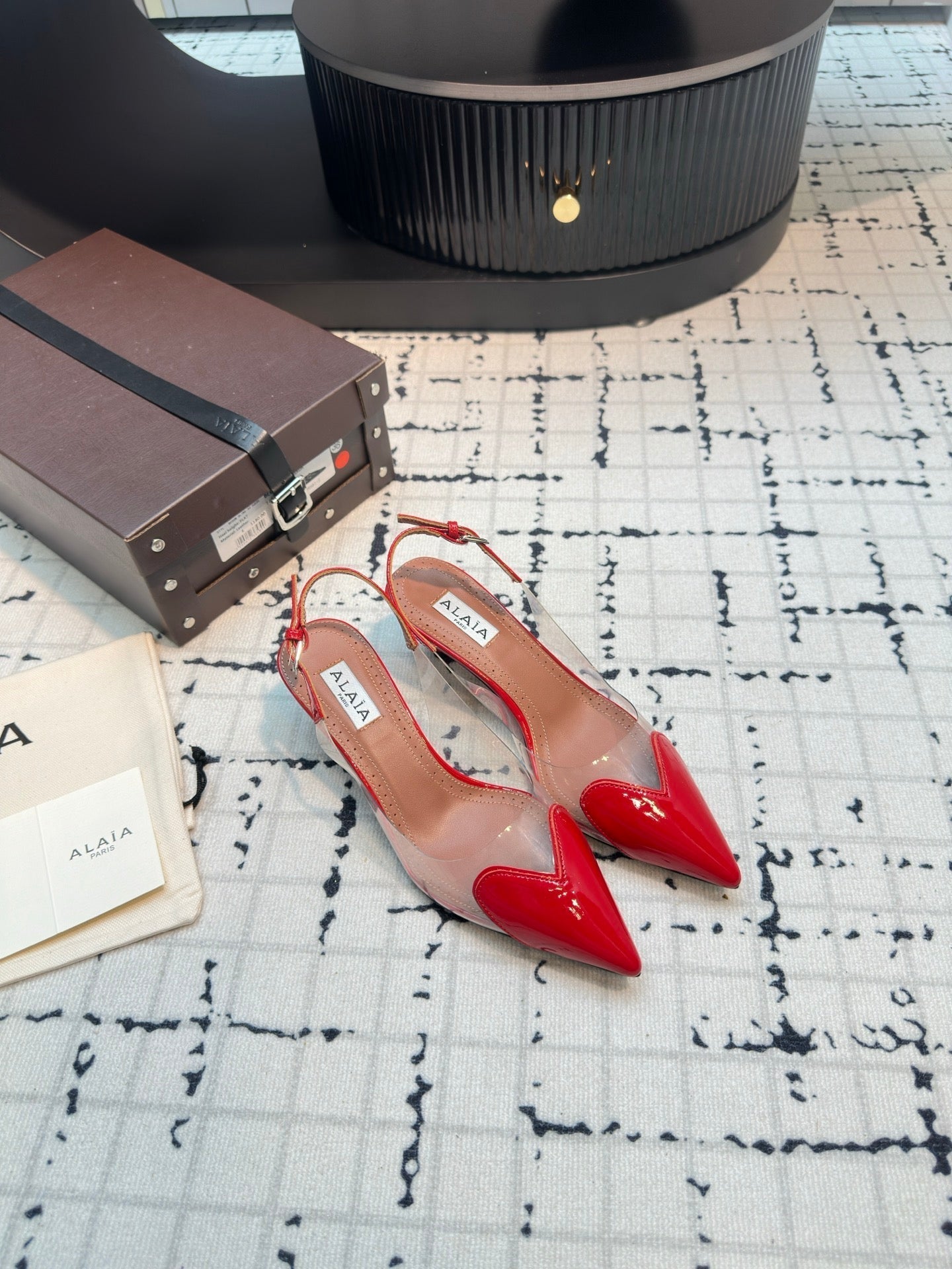 Alaia Heart 50mm Heels Slingbacks Red Sheepskin 810206