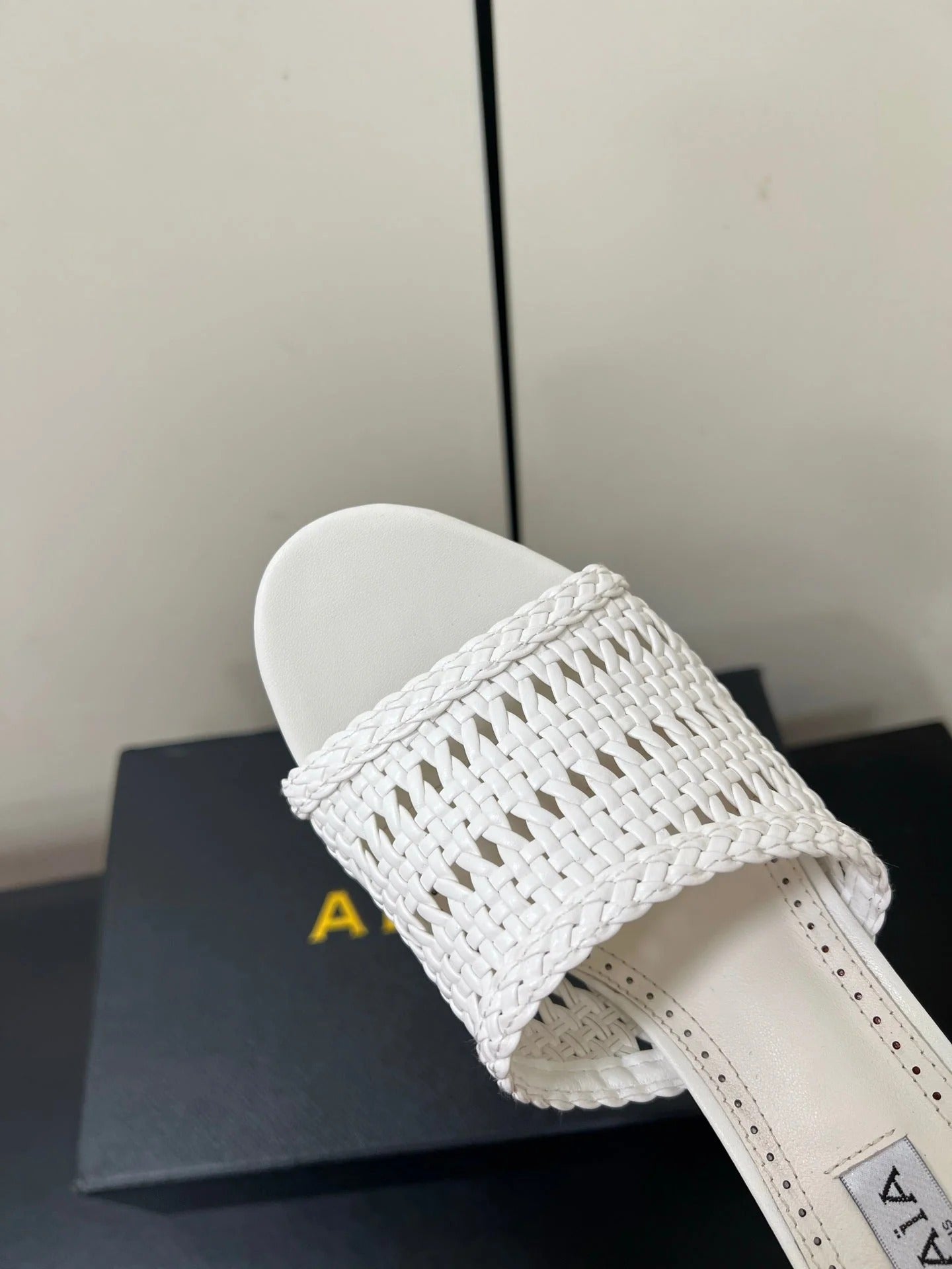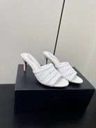 Alaia High Heel 25s 70 Mm In White Lambskin With Woven Pattern