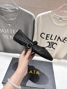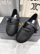 ALAIA MARY JANE FLATS black woven calfskin pattent
