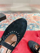 ALAIA MARY JANE IN BLACK SUEDE WITH SILVER HARDWARE