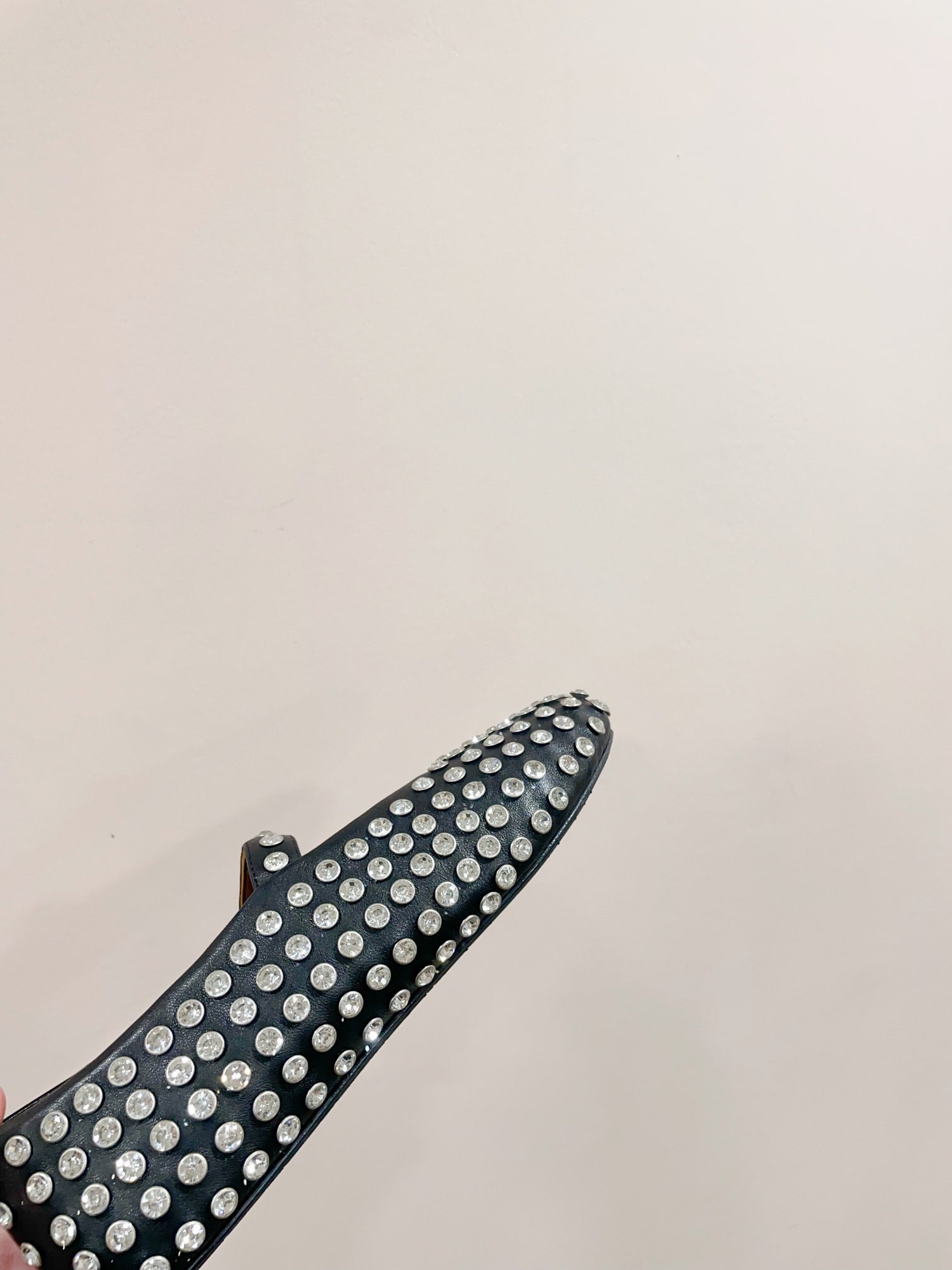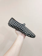 ALAIA MARY JANE SHOES IN BLACK LAMBKIN ATTACH RHINSTONES