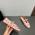 ALAIA MARY JANE SHOES IN LIGHT PINK LAMBSKIN GOLD MIX SILVER HARDWARE
