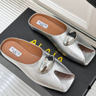 Alaia Slipper With Gold Hardware Silver Calfskin 293204