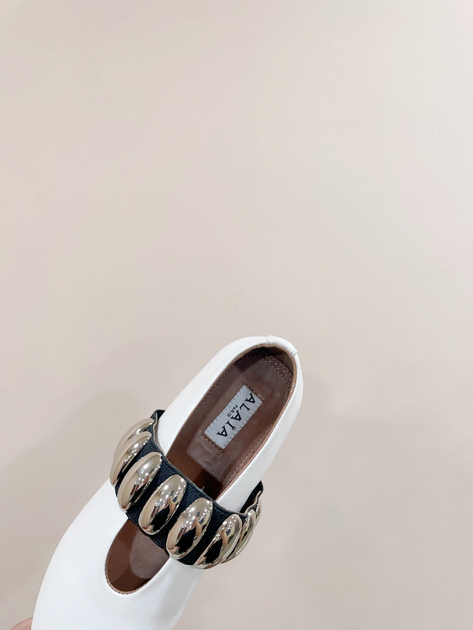 ALAIA TRIBALE BALLET FLATS IN WHITE LAMBSKIN