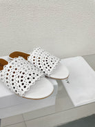 ALAIA VIENNE FLAT MULES IN WHITE LAMBSKIN