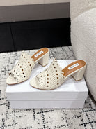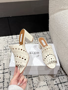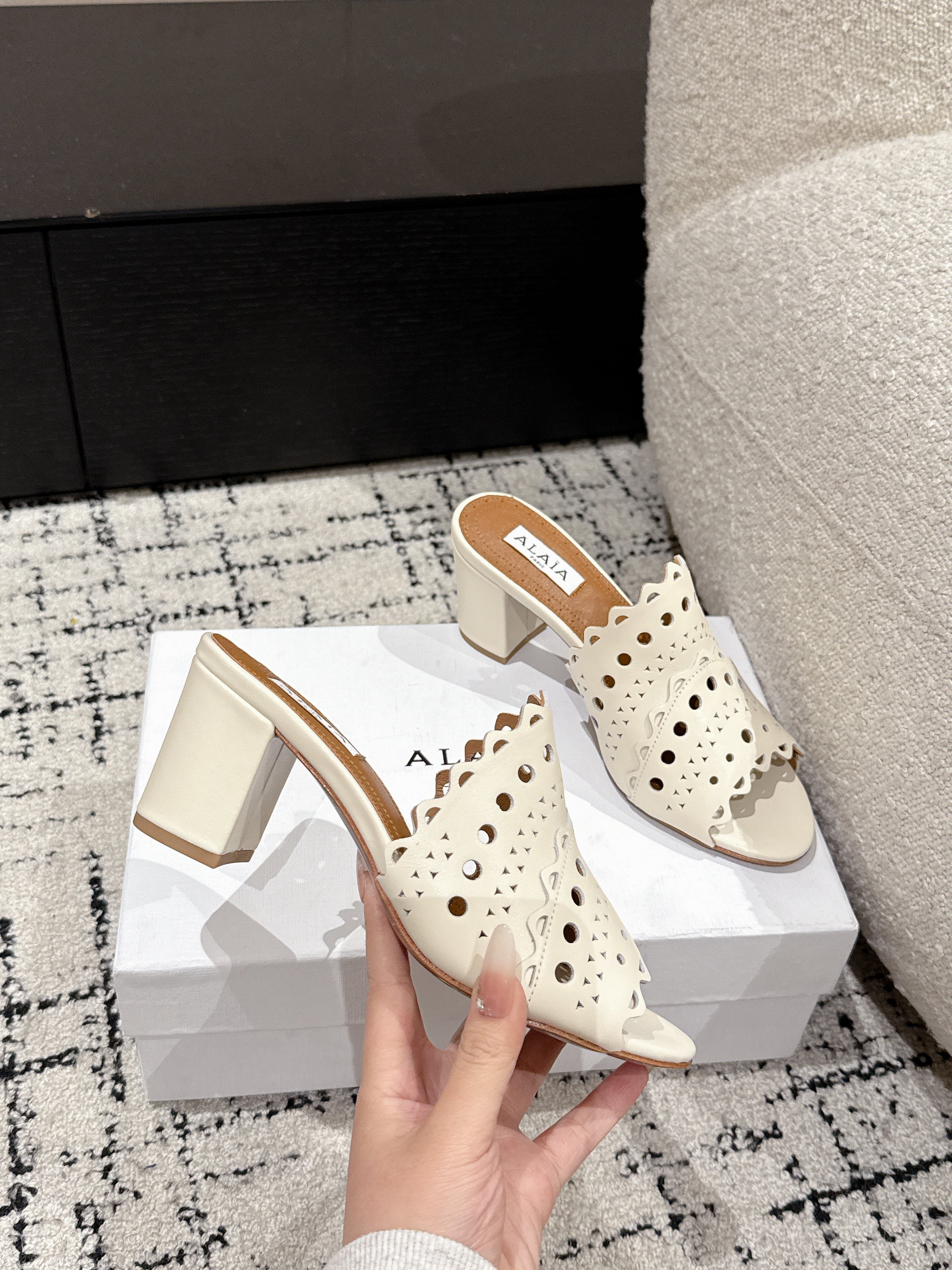 Alaia Vienne Mule Heeled Sandals 70mm Cream Leather 232501