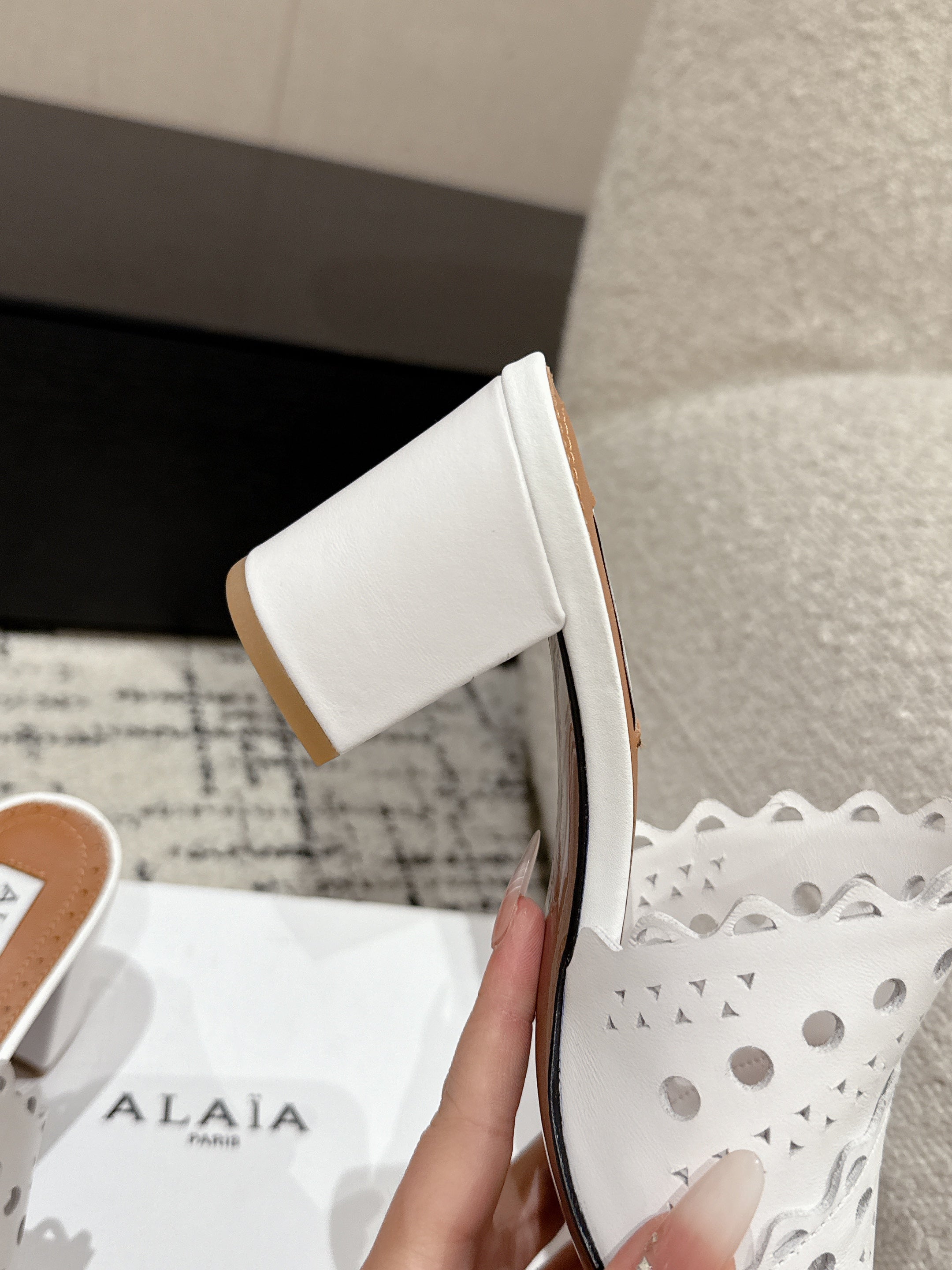 Alaia Vienne Mule Heeled Sandals 70mm White Leather 232504
