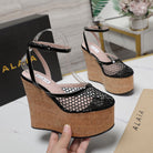ALAIA WEDGE SANDAL IN BLACK MESH AND BEIGE RUBBER