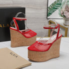 ALAIA WEDGE SANDAL IN CHERRY RED MESH AND BEIGE RUBBER