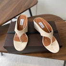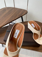 Alaia Wedge Thong Sandals 25s In Light Beige Suede