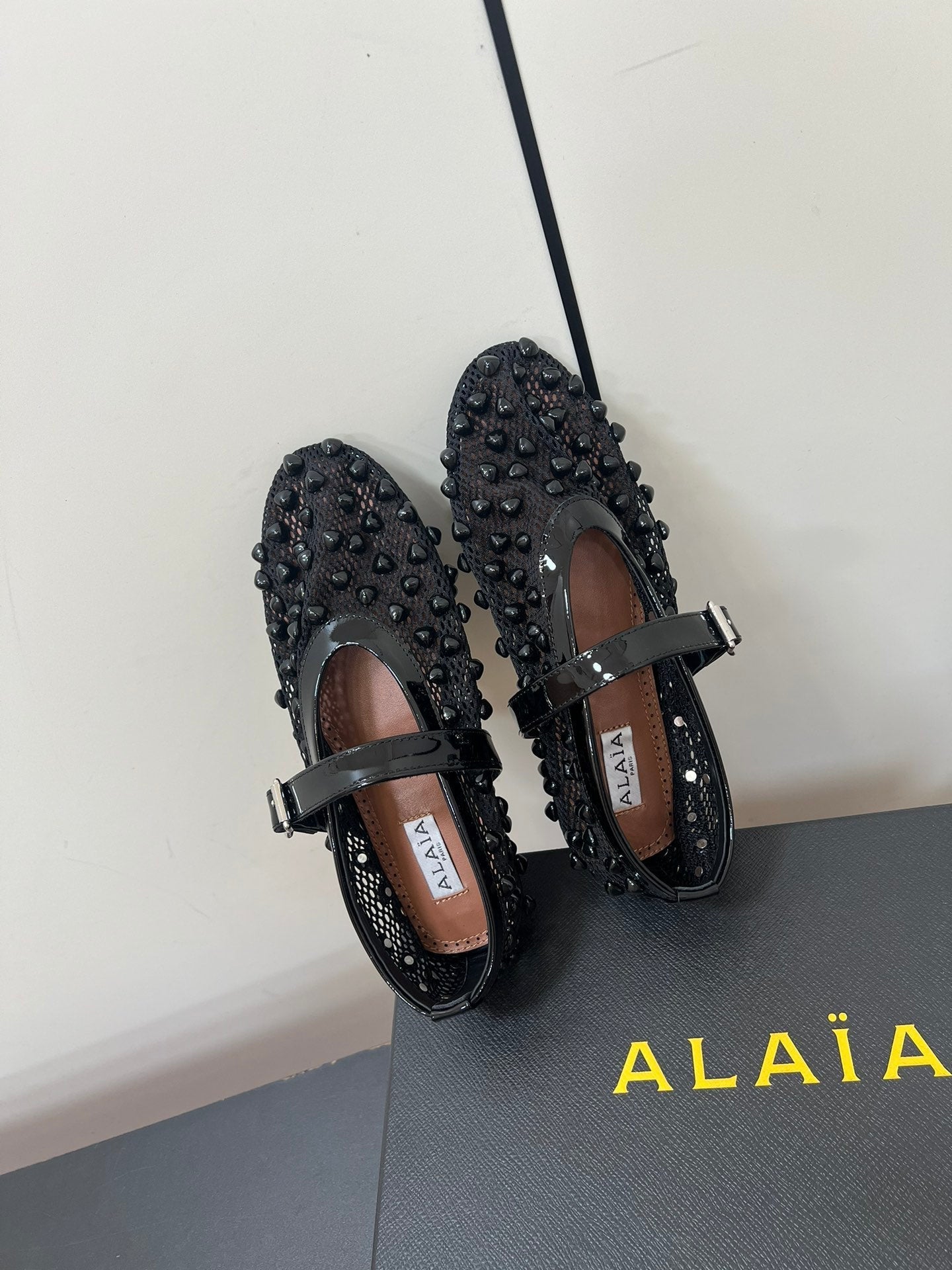 Alaila Ballet Flats With Studs On Fishnet In Black 975753