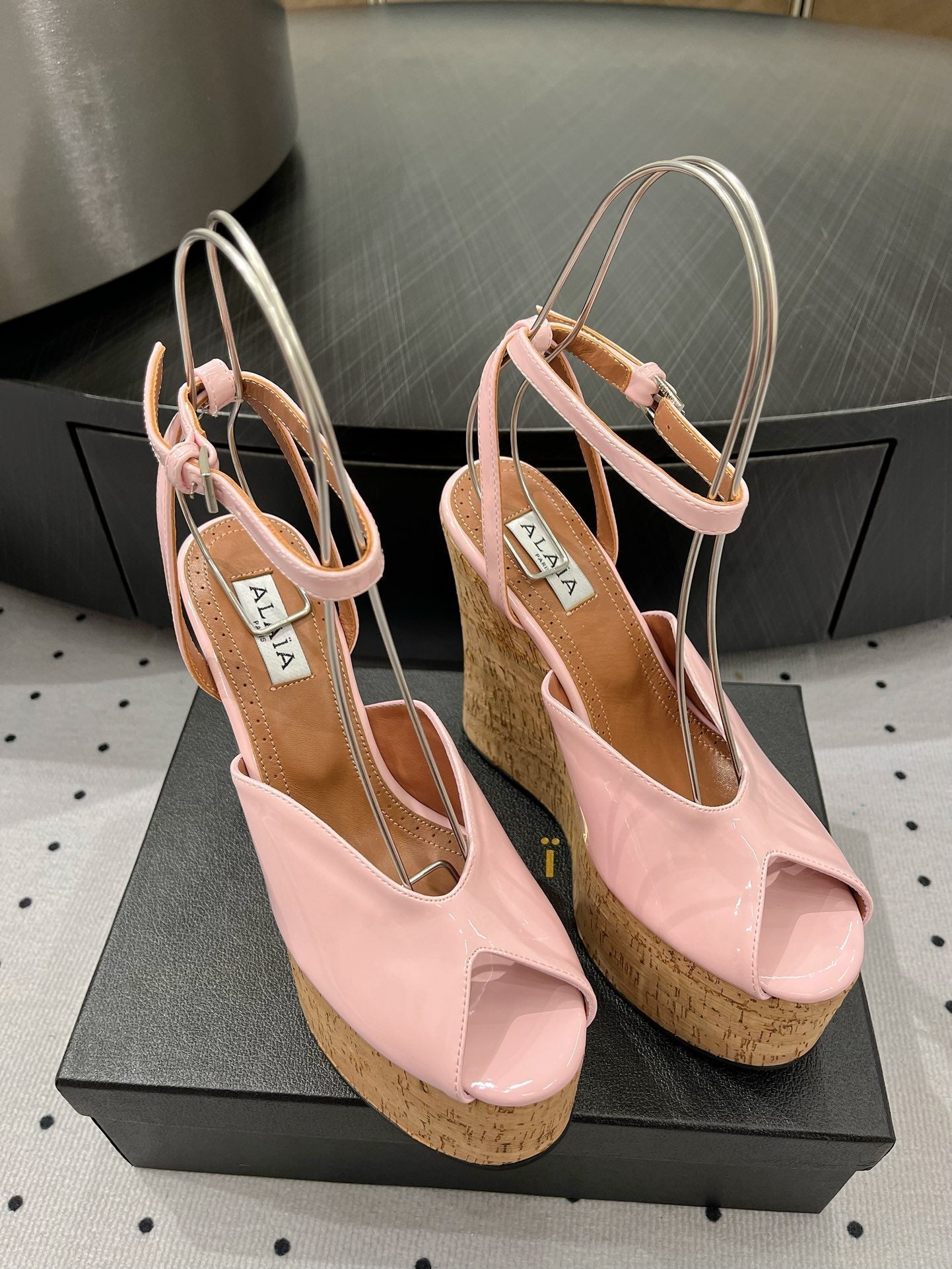 Alaila Wedge Sandals 135mm In Pink Glossy Lambskin 954905