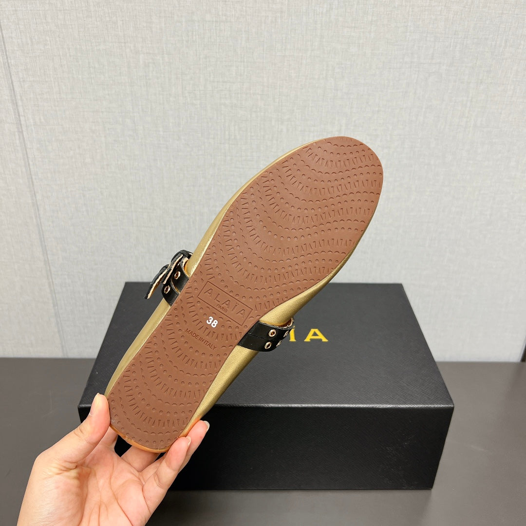 ALAIA FLAT MULE IN BLACK LAMBSKIN WITH GOLD HARDWARE