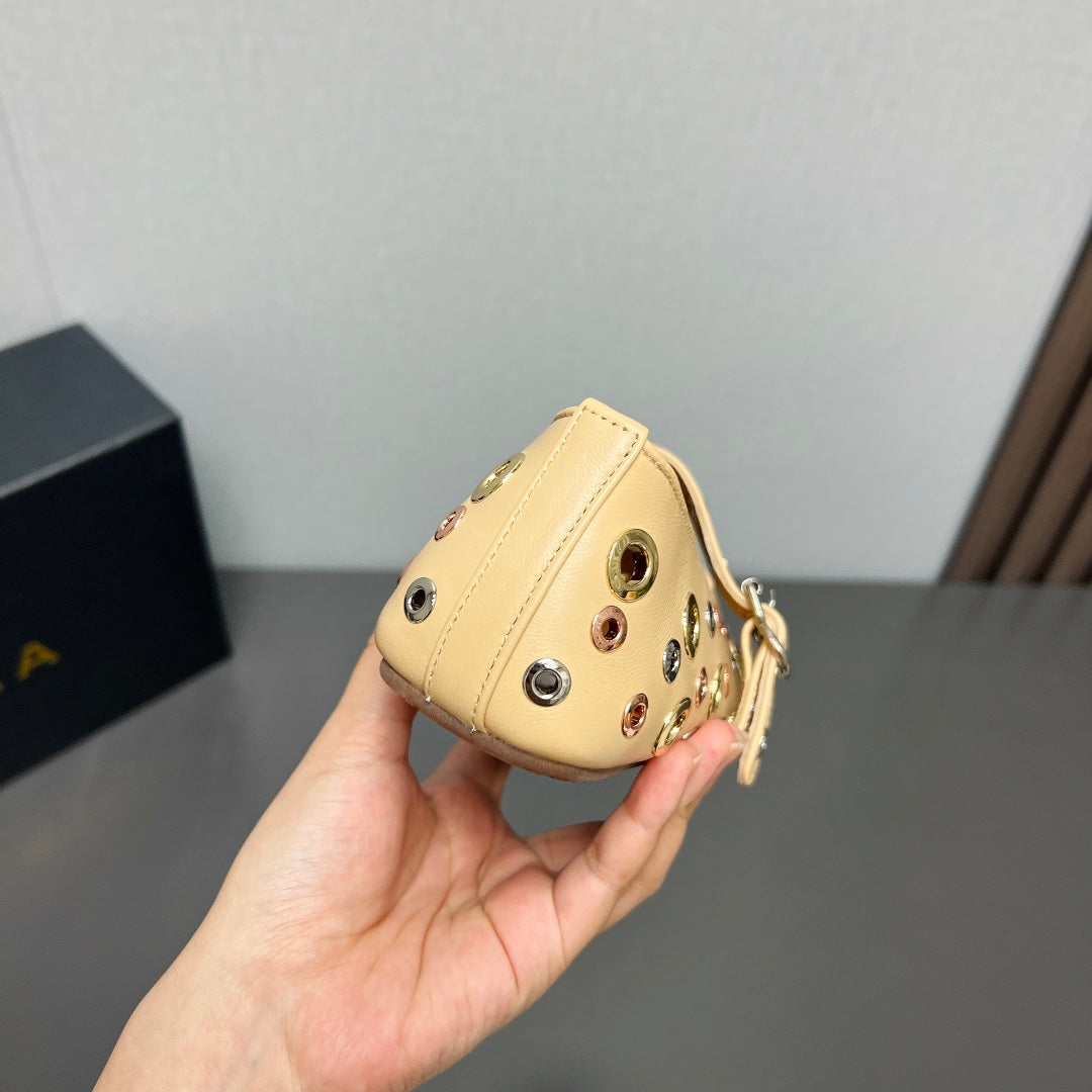 ALAIA FOLDED FLAT MULES WITH SPHERES ON COPPER BROWN CALFSKIN
