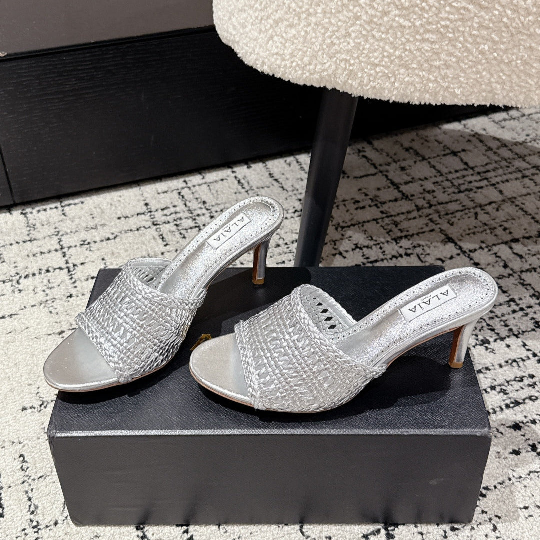 Alaia High Heel 25s 70 Mm In Silver Lambskin With Woven Pattern