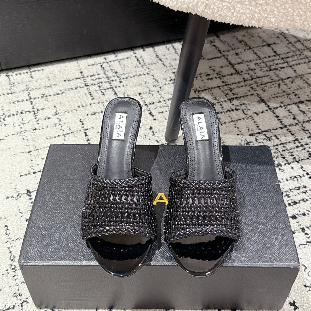 Alaia High Heel 25s 70 Mm In Black Lambskin With Woven Pattern