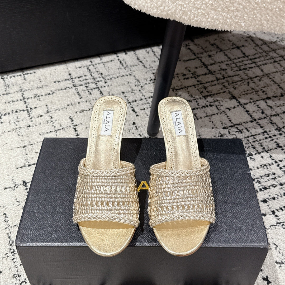 Alaia High Heel 25s 70 Mm In Gold Lambskin With Woven Pattern