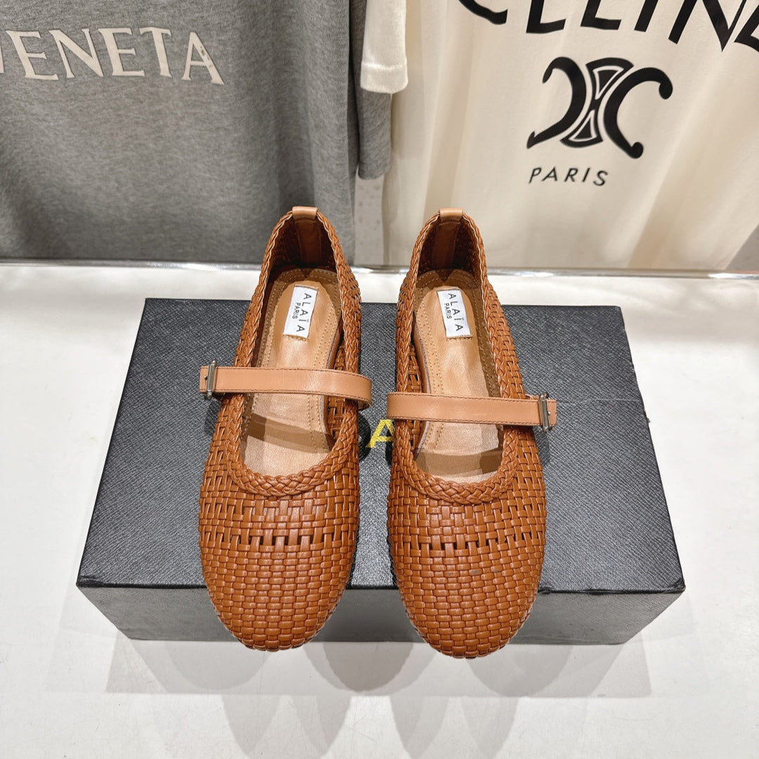 Alaia Mary Jane Flats Woven Pattern 25s In Brown Calfskin