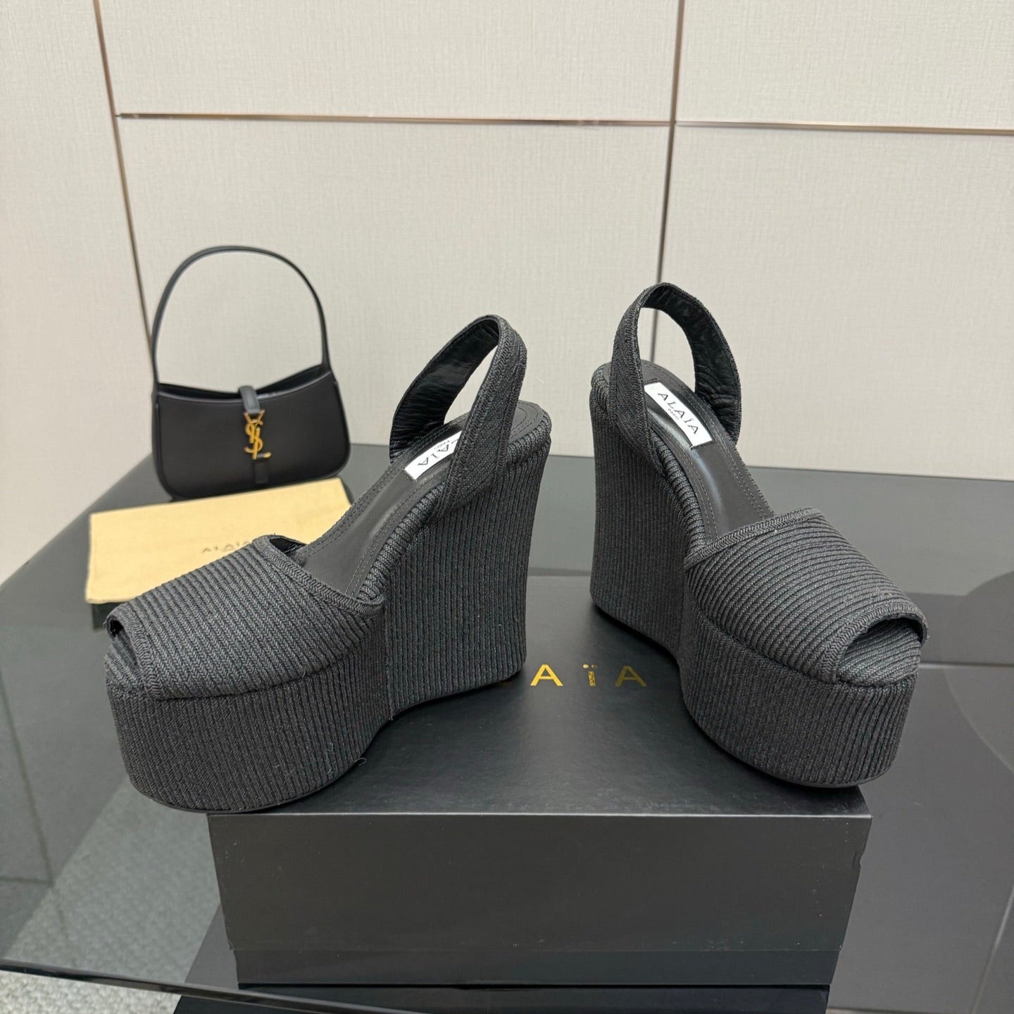Alaia Wedge Thong Sandals 25s In Black Suede