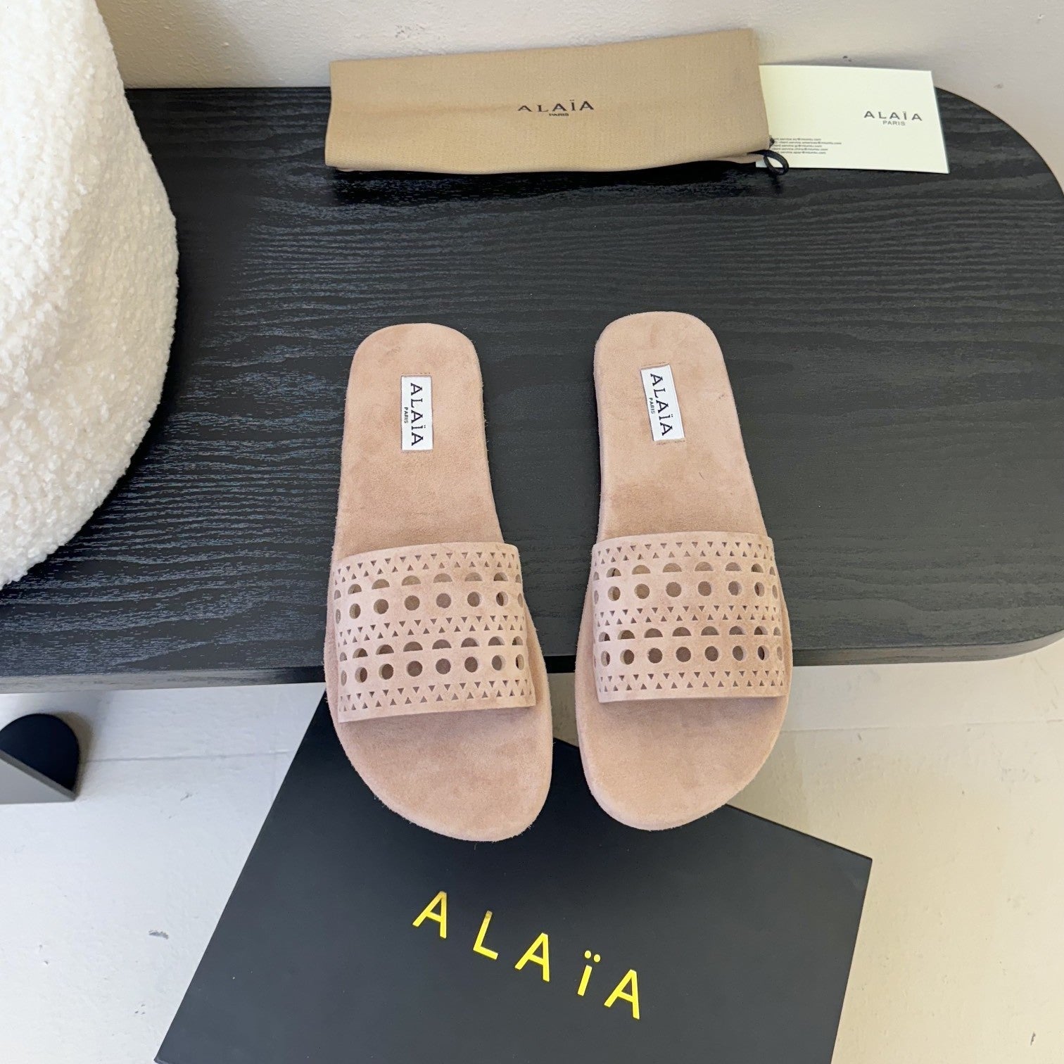 Alaia Slipper With Gold Hardware Brown Calfskin 293202