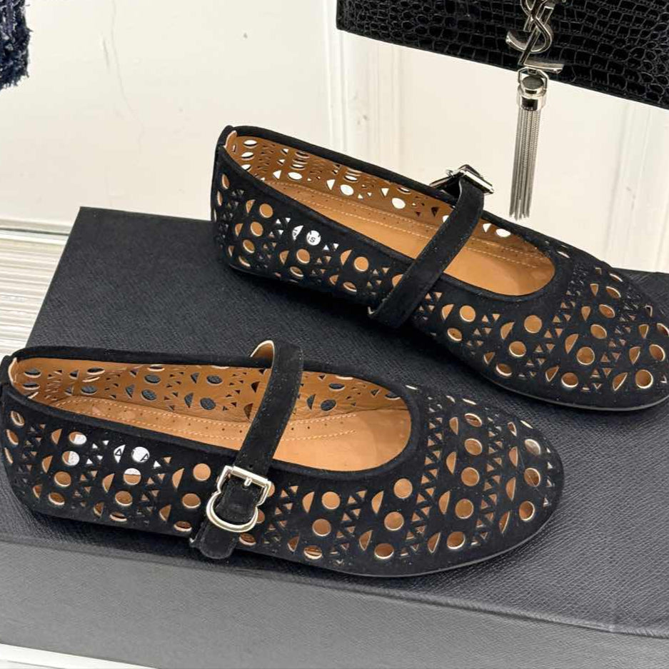 Alaia Ballet Flats In Black Woven Cowhide 102286