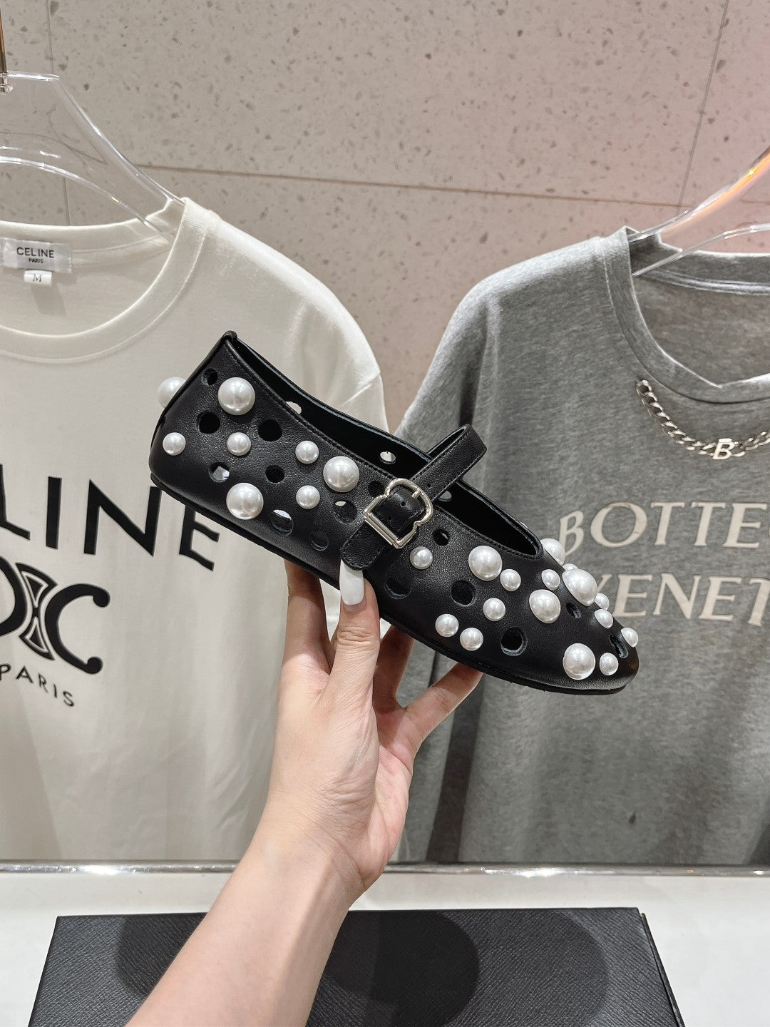 ALAIA PEARL MARY JANE SHOES BLACK MIX WHITE LAMBSKIN