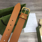 G BELT GOLD SQUARE INSTALL BUCKLE BROWN LEATHER 3.5CM