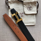 HM BELT BUCKLE & REVERSIBLE BLACK AND BRONZE BROWN LEATHER STRAP 38MM GOLD HARDWARE
