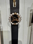 LV CIRCLE PEARL 35MM REVERSIBLE BELT IN BLACK CALFSKIN GOLD HARDWARE