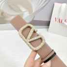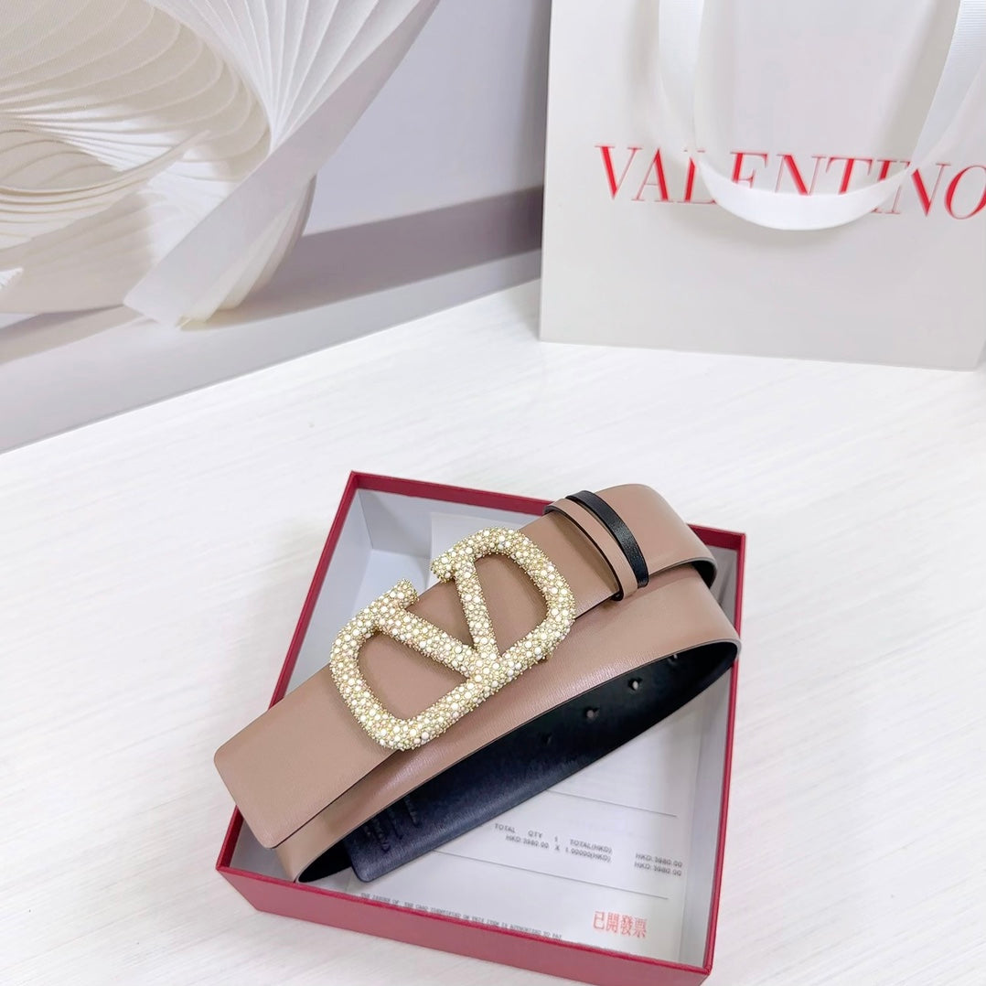 VLOGO SIGNATURE REVERSIBLE BELT 40MM ROSE BLACK GOLD CALFSKIN GOLD PEARL BUCKLE