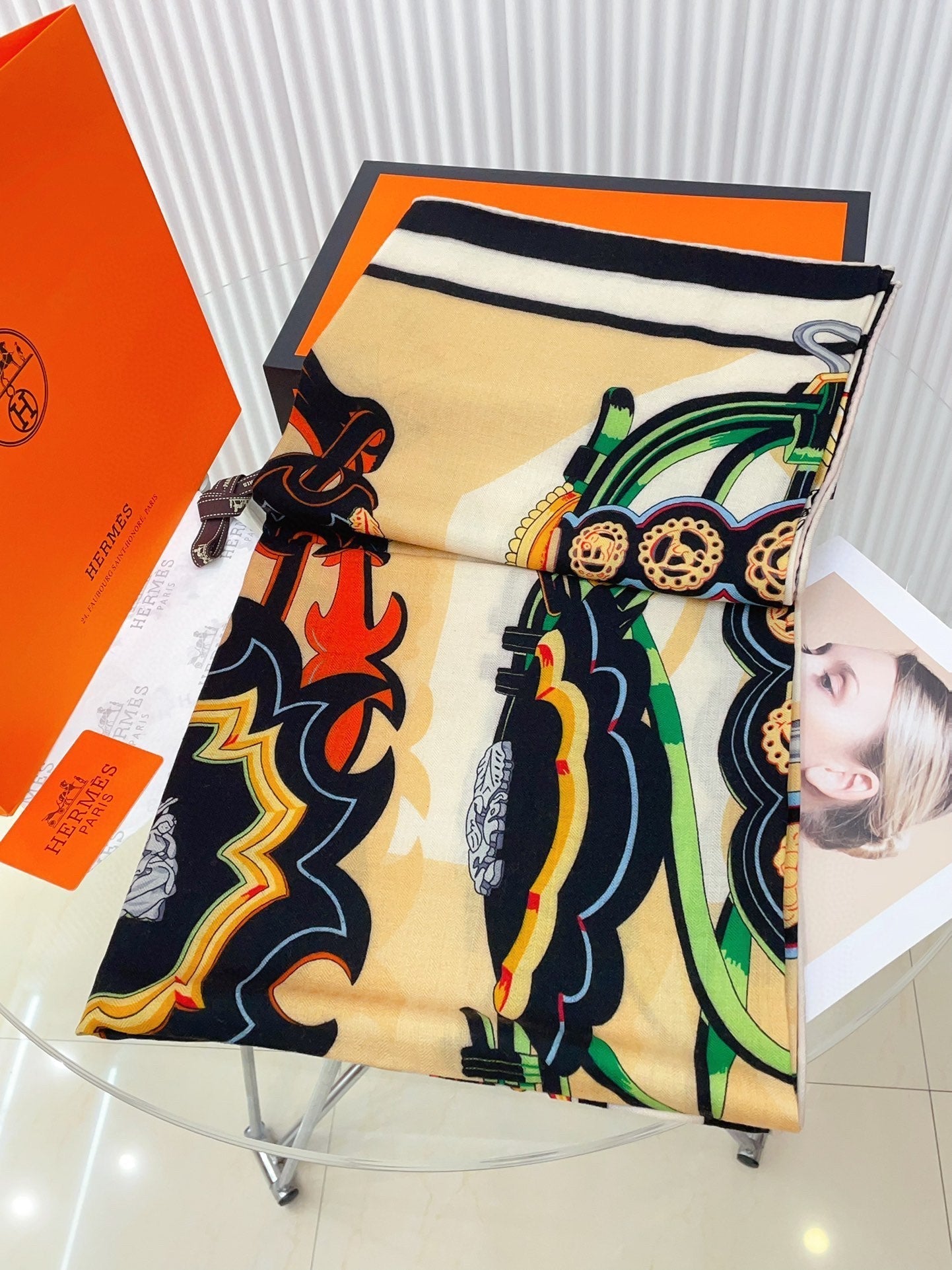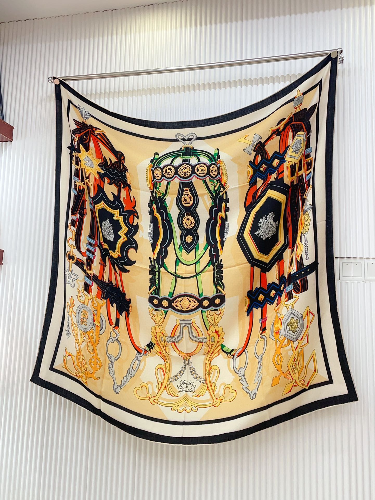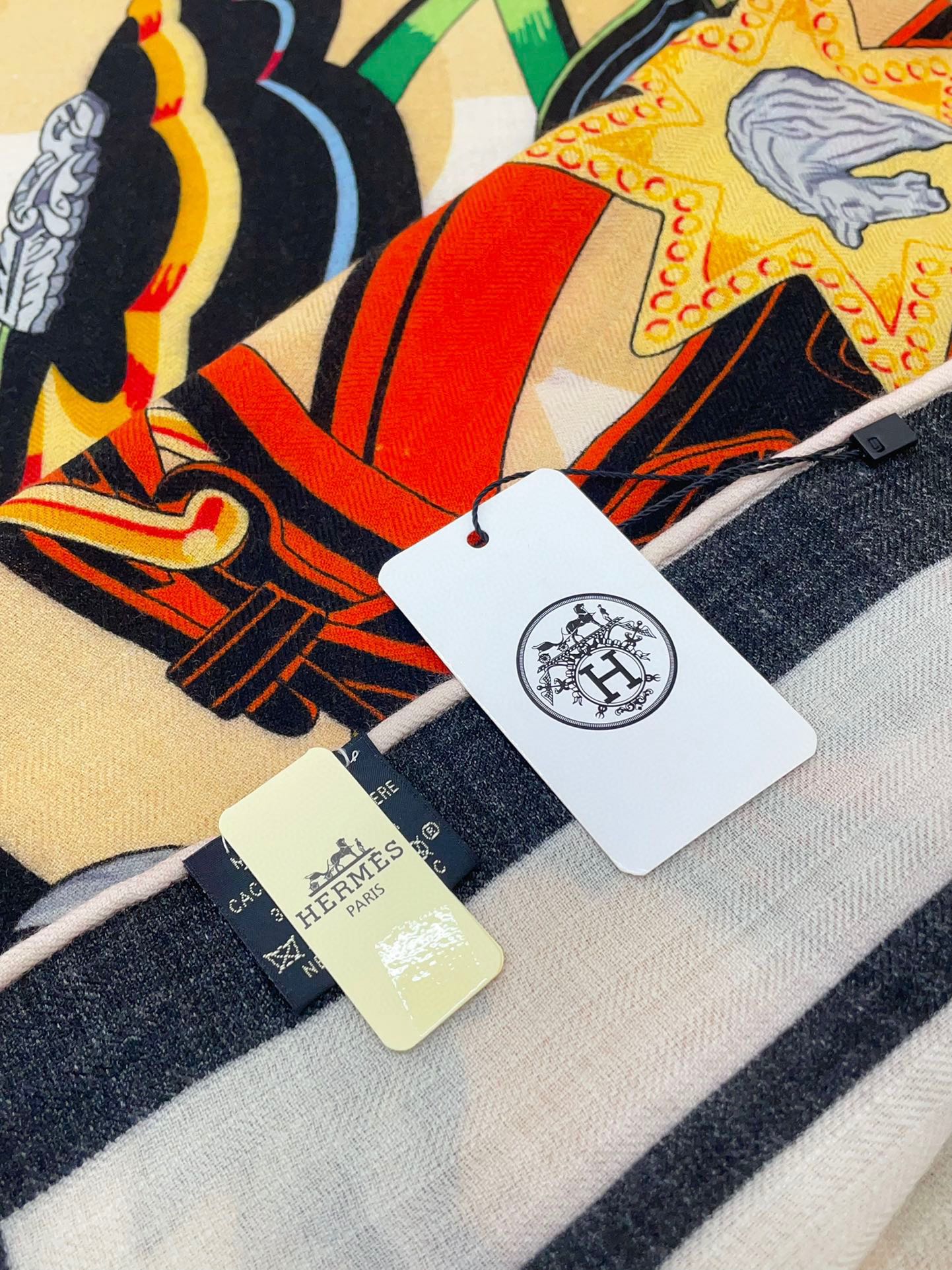 Brides Et Destin Scarf 140 CM In Light Yellow Colorful Cashmere Silk 375373