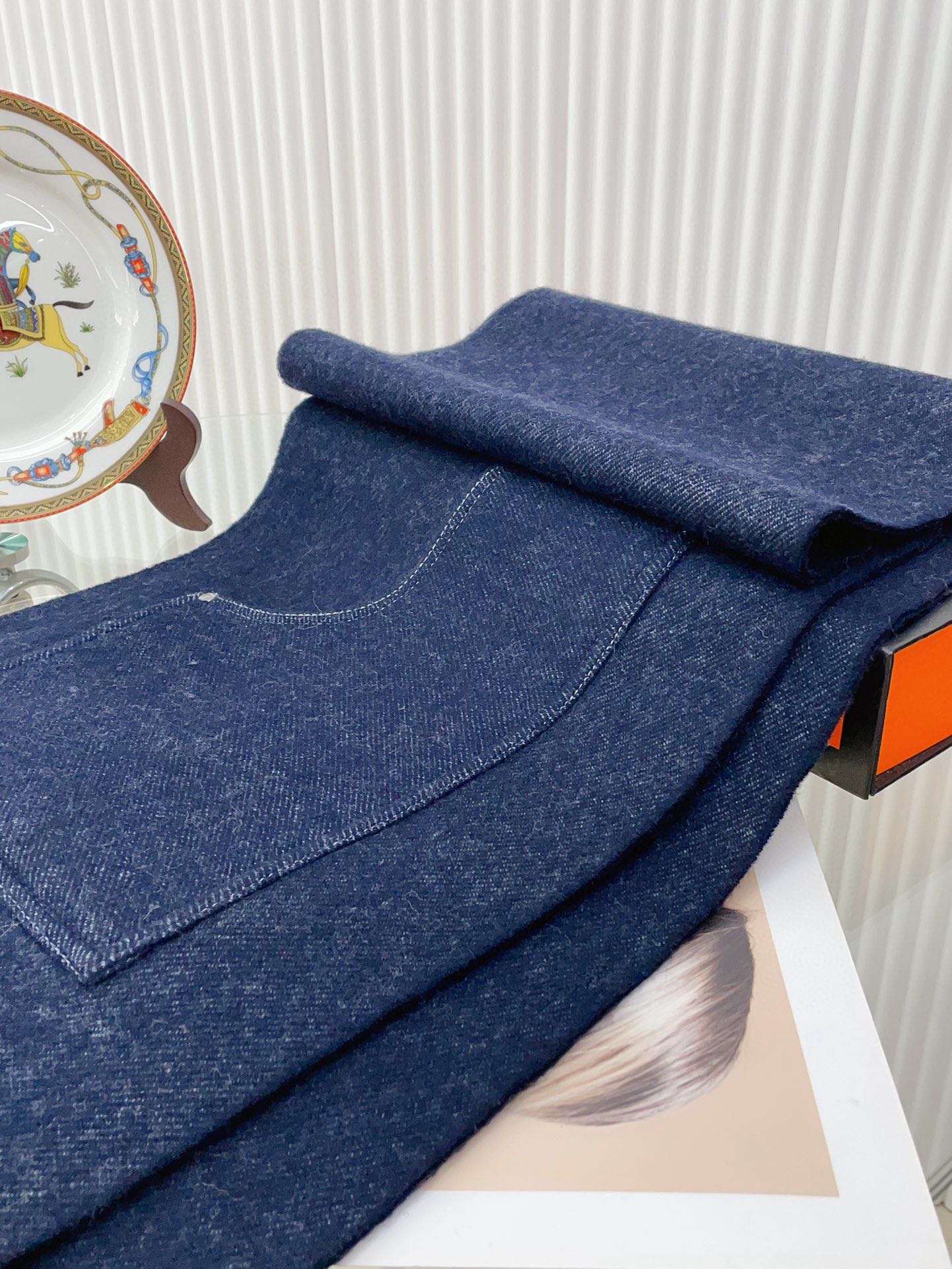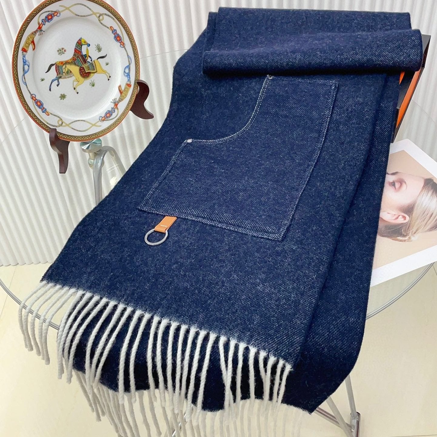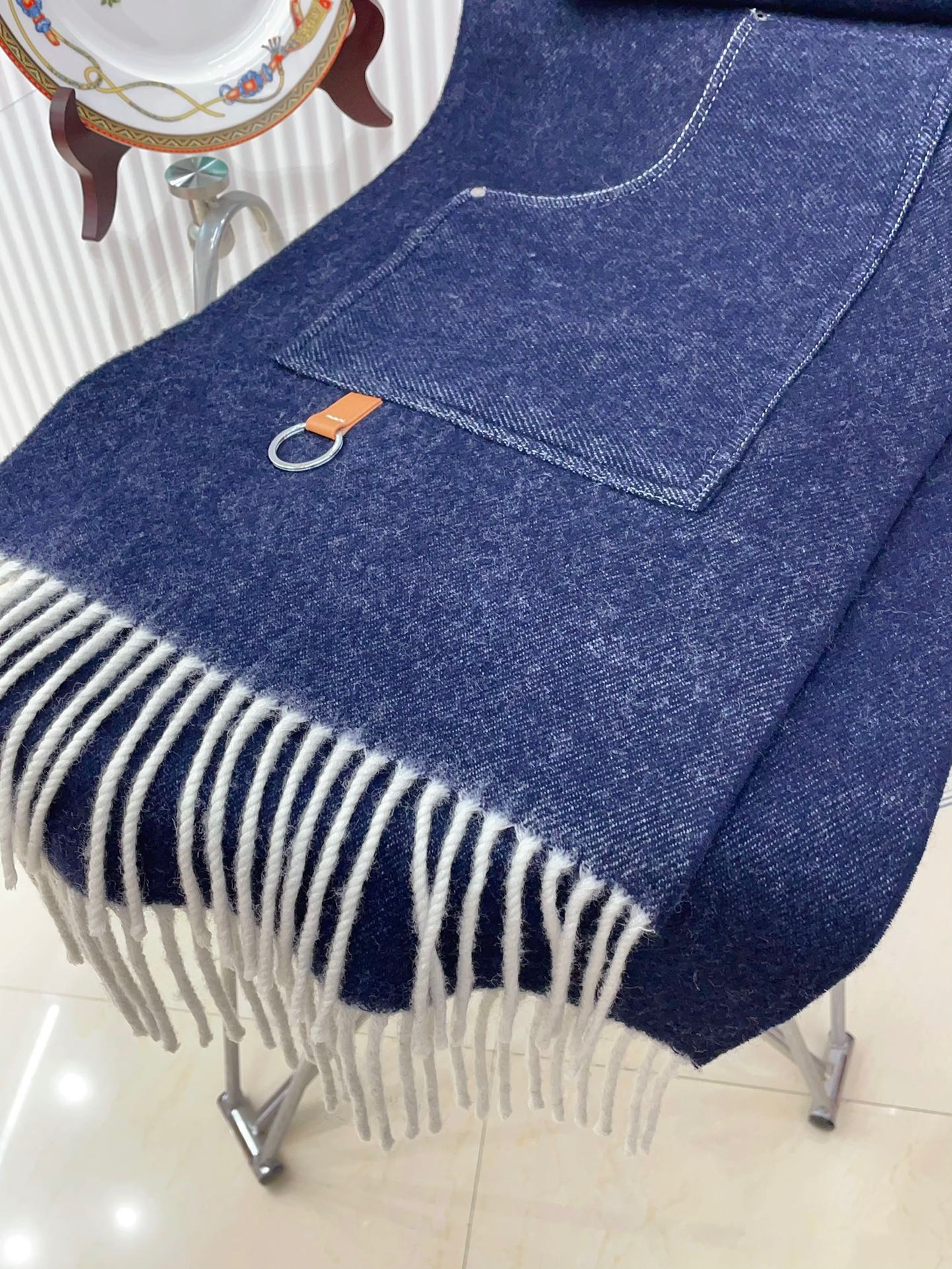 Cargo muffler Scarf 190 CM Navy Blue Wool 375381