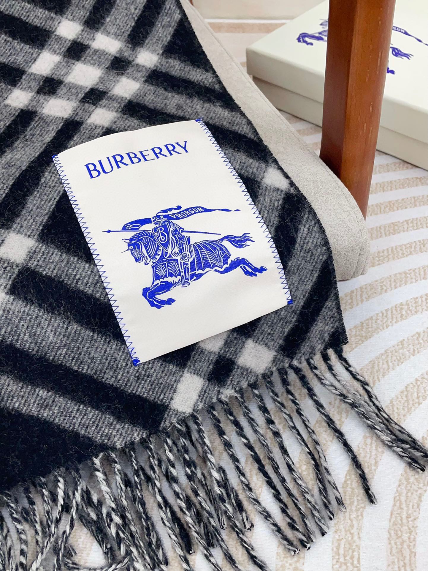 CHECK CASHMERE SCARF 168 CM BLACK MIX WHITE 410210
