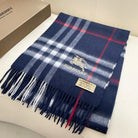 CHECK SCARF 180 CM IN INDIGO BLUE MIX WHITE CASHMERE 405480