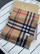 CHECK SCARF 200 CM IN CAMEL BEIGE MIX BLACK CASHMERE 394753