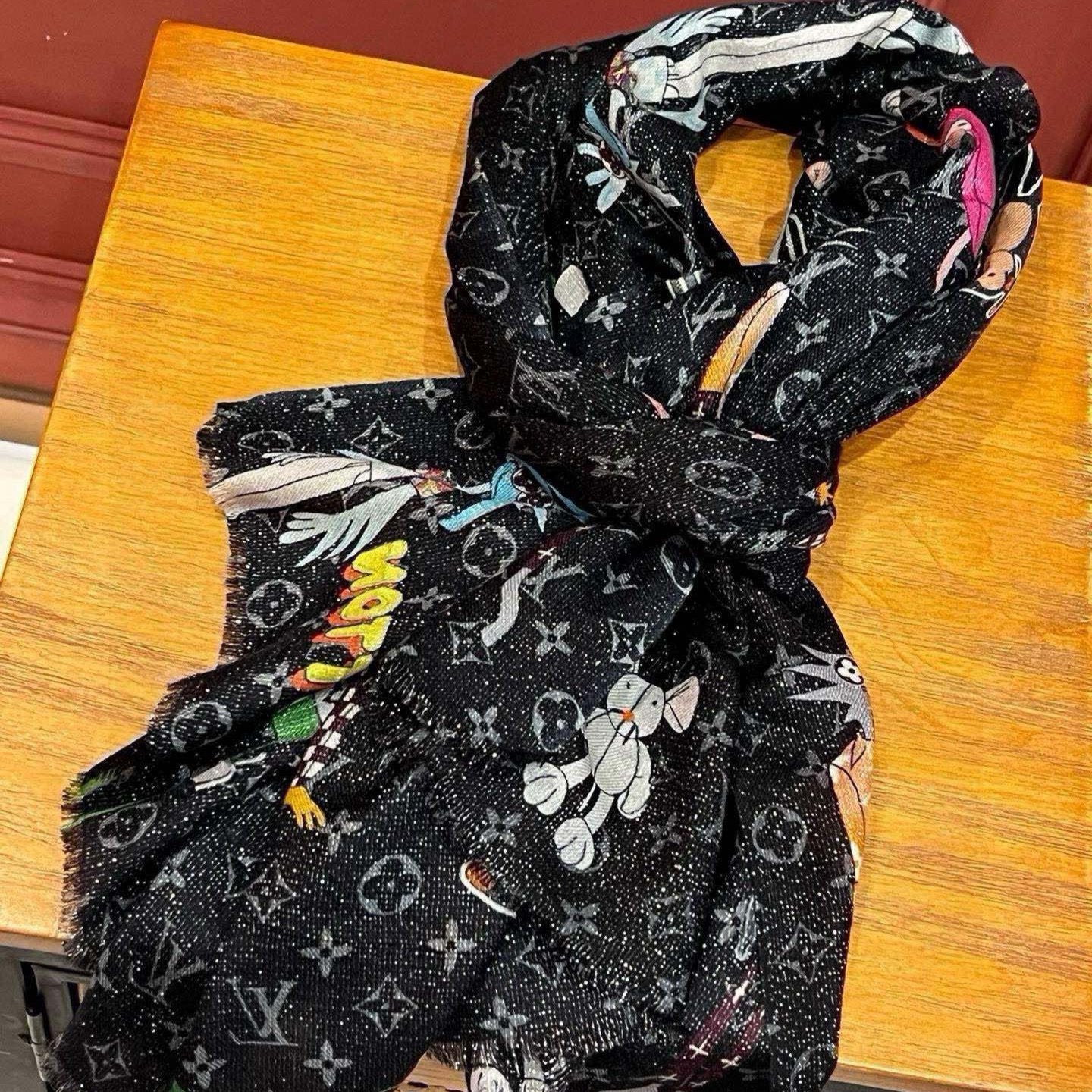 LONG SCARF 200 CM IN BLACK MONOGRAM CASHMERE 396507