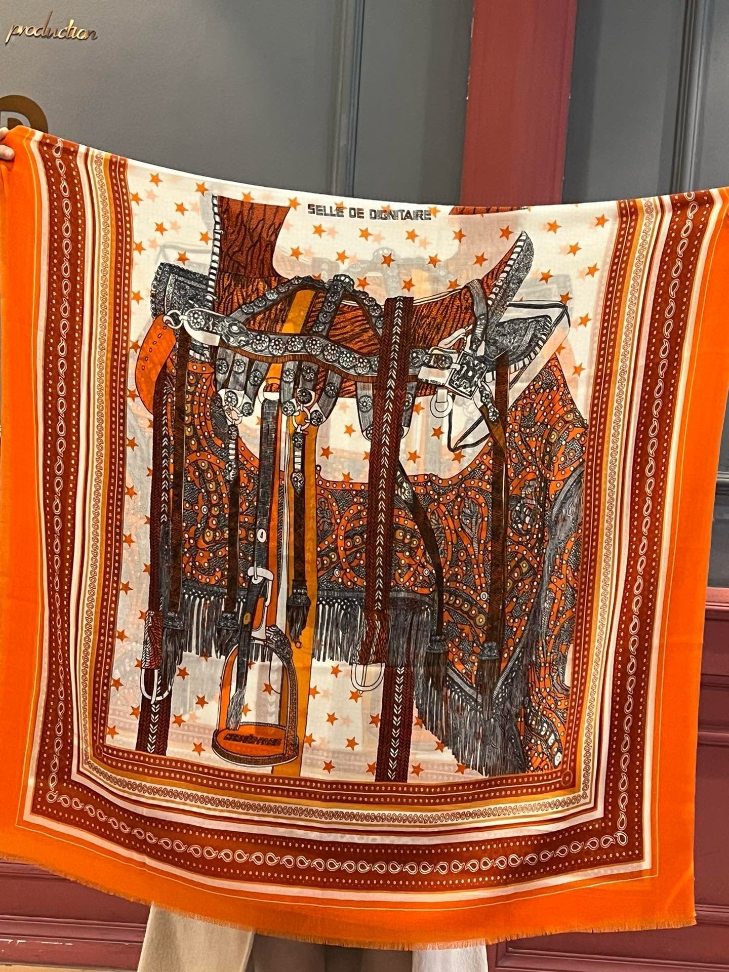 Selle De Dignitaire Bandana Shawl 200 CM In Orange Red Colorful Cashmere 265333
