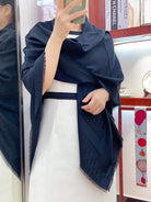 SQUARE SCARF 140 CM IN NAVY BLUE WOOL AND SILK 408662