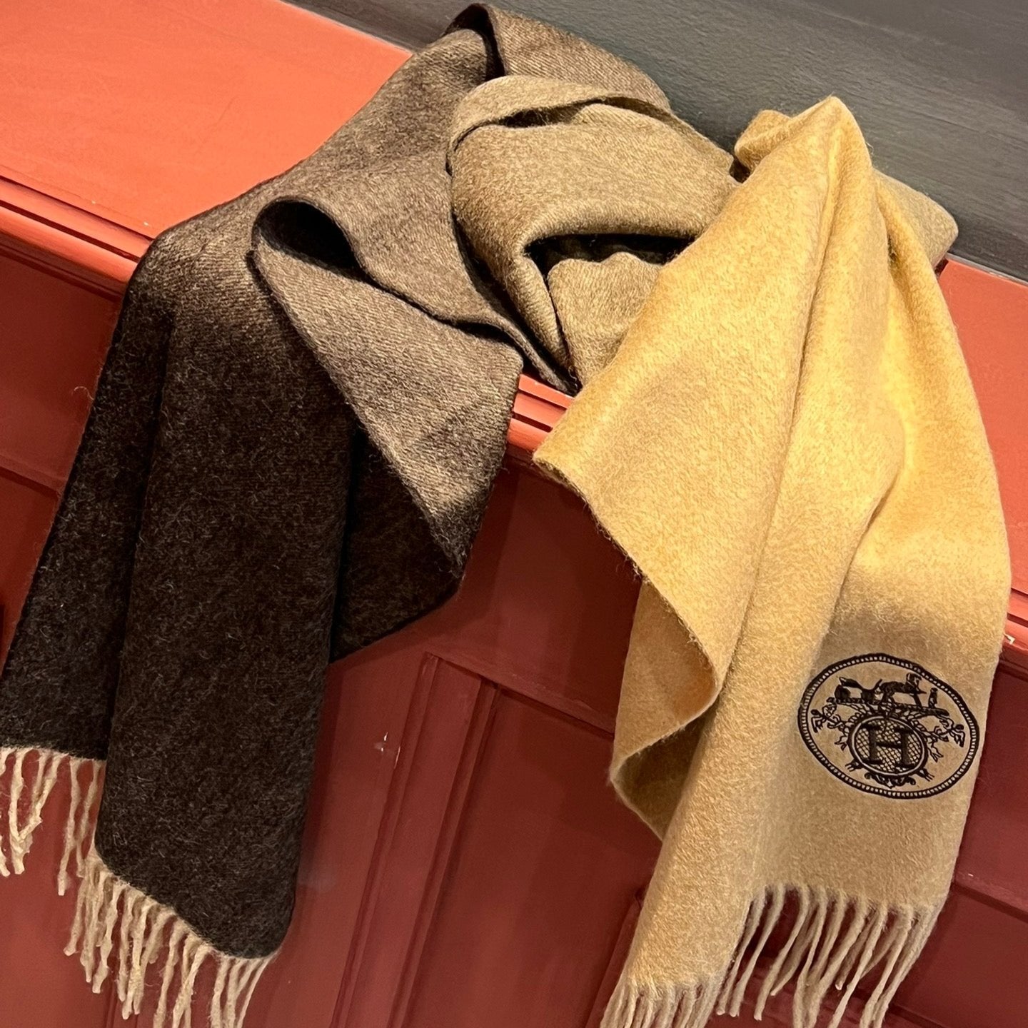 SCARF 185 CM IN MEDIUM BROWN MIX WHITE CASHMERE 390093