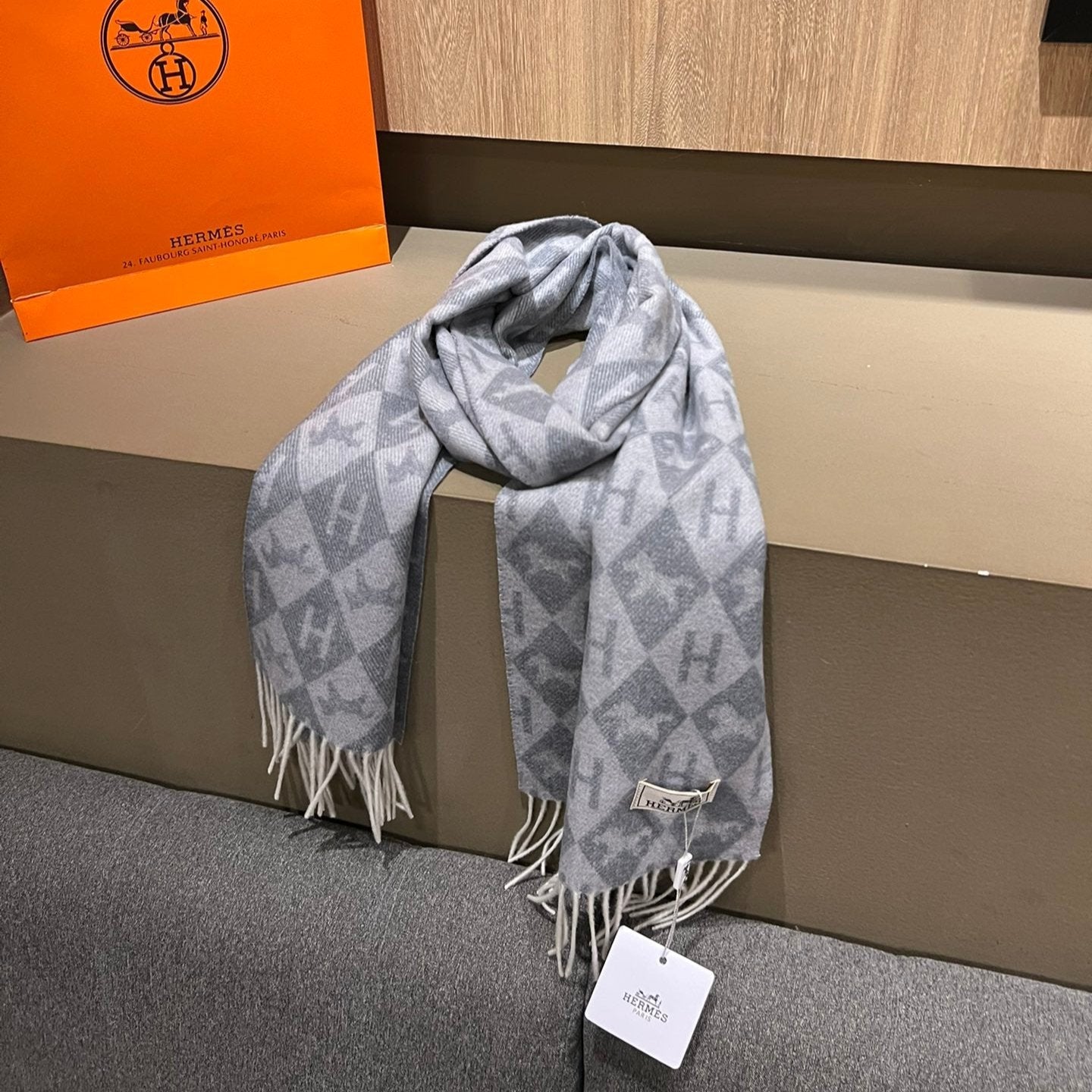 SCARF 220 CM IN WHITE MIX LIGHT GRAY MONOGRAM CASHMERE AND WOOL 413657