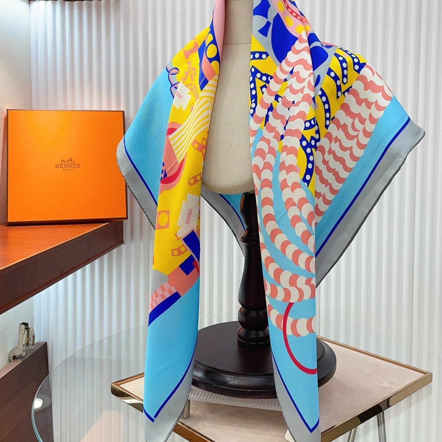 Silla De Gaucho Scarf 90 CM In Yellow Orange Colorful Silk Twill 320652