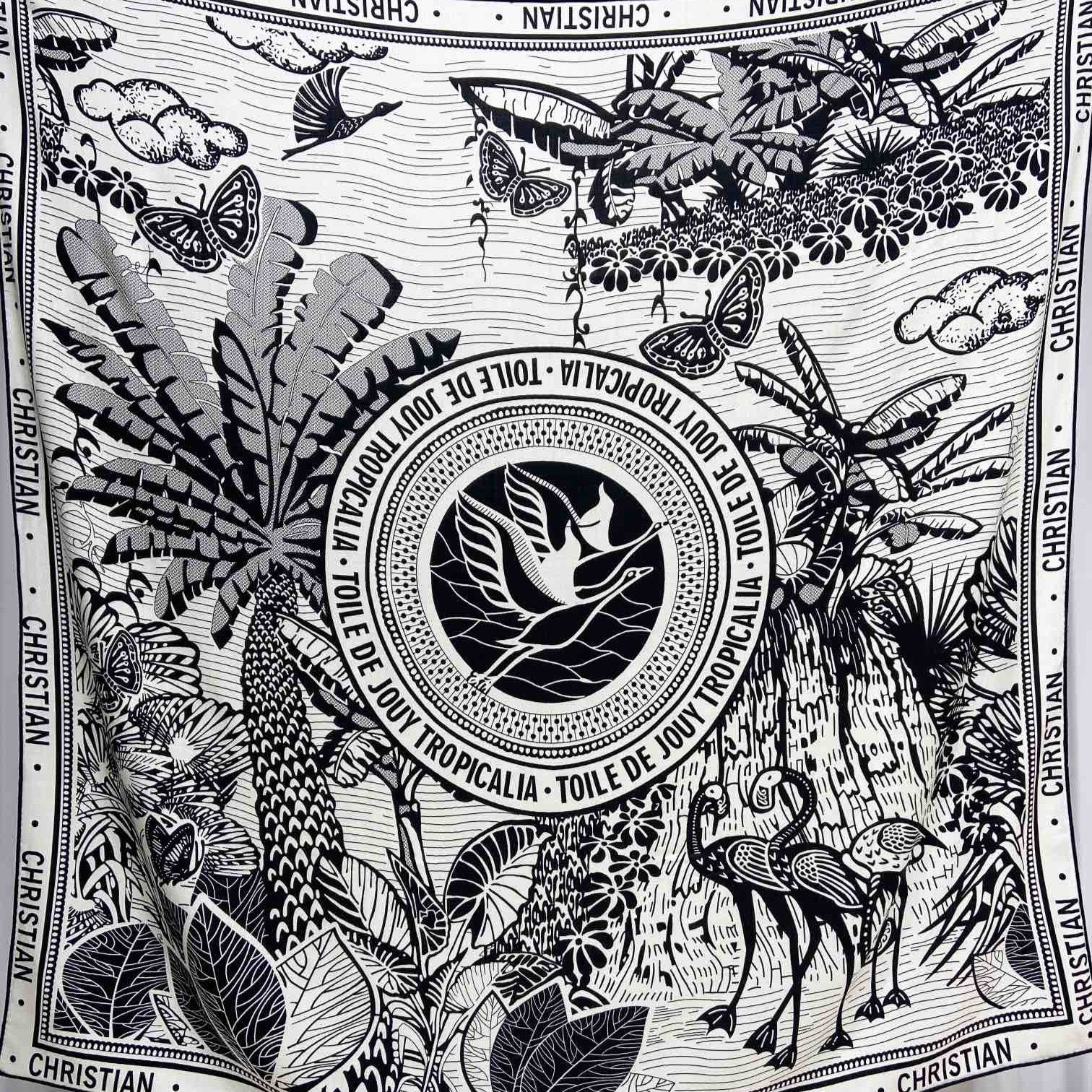 SQUARE SCARF 140 CM IN BLACK MIX WHITE MONOGRAM SILK 393136