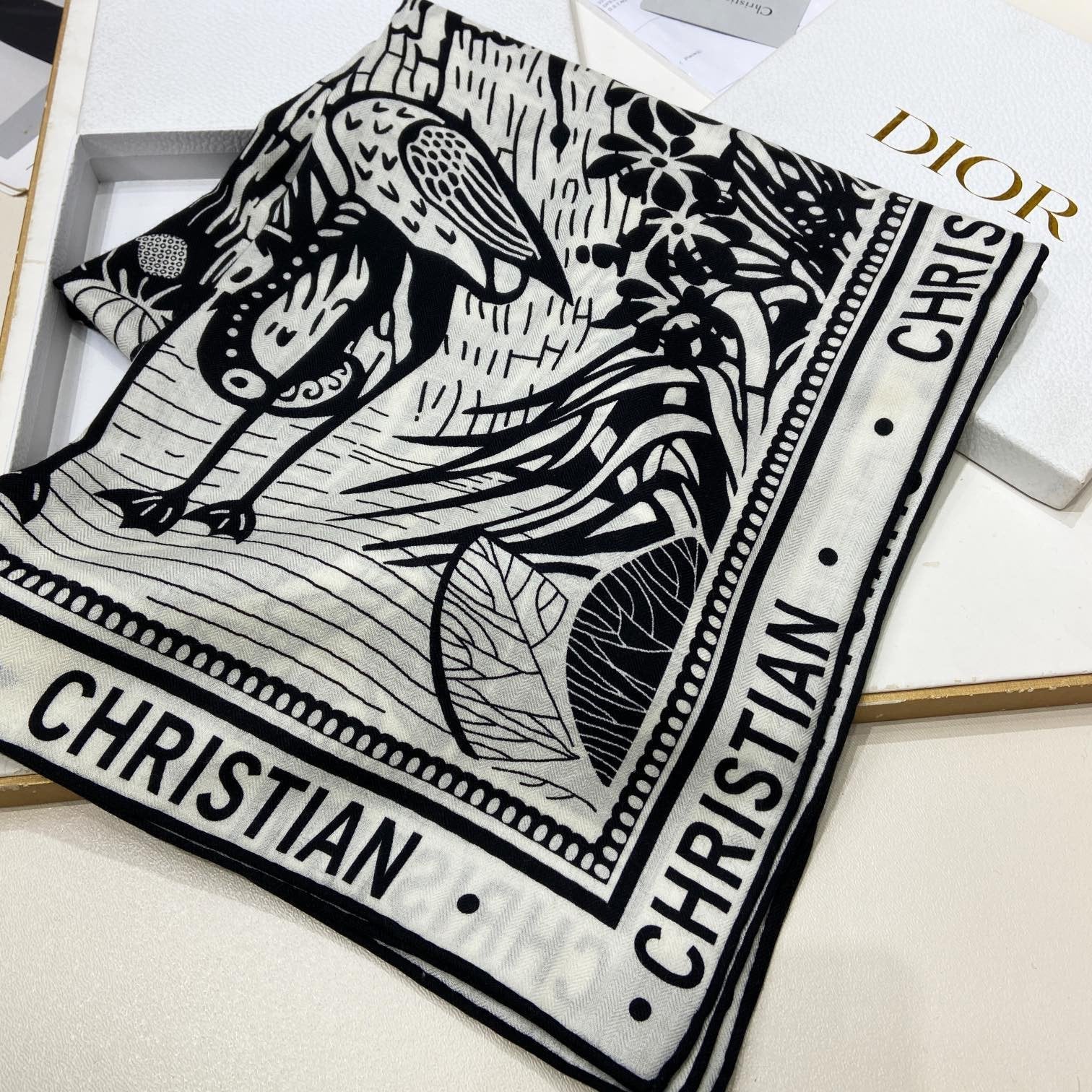 SQUARE SCARF 140 CM IN BLACK MIX WHITE MONOGRAM CASHMERE AND WOOL 416918