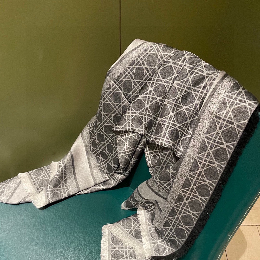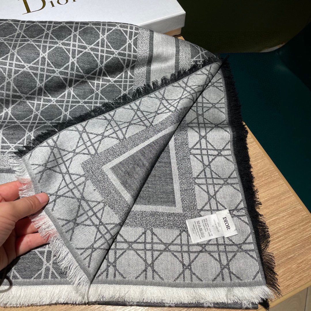 Square Scarf 140CM In Grey White Colorful Cashmere And Silk